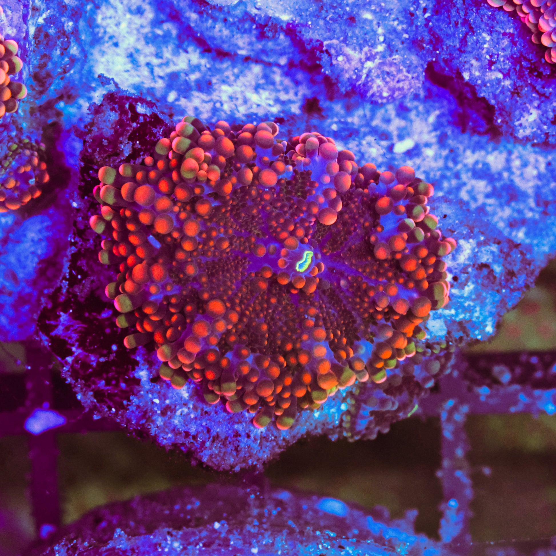 Ricordea mushrooms are soft corals with vibrant, bubble-like vesicles. They prefer lower to moderate light and gentle flow.